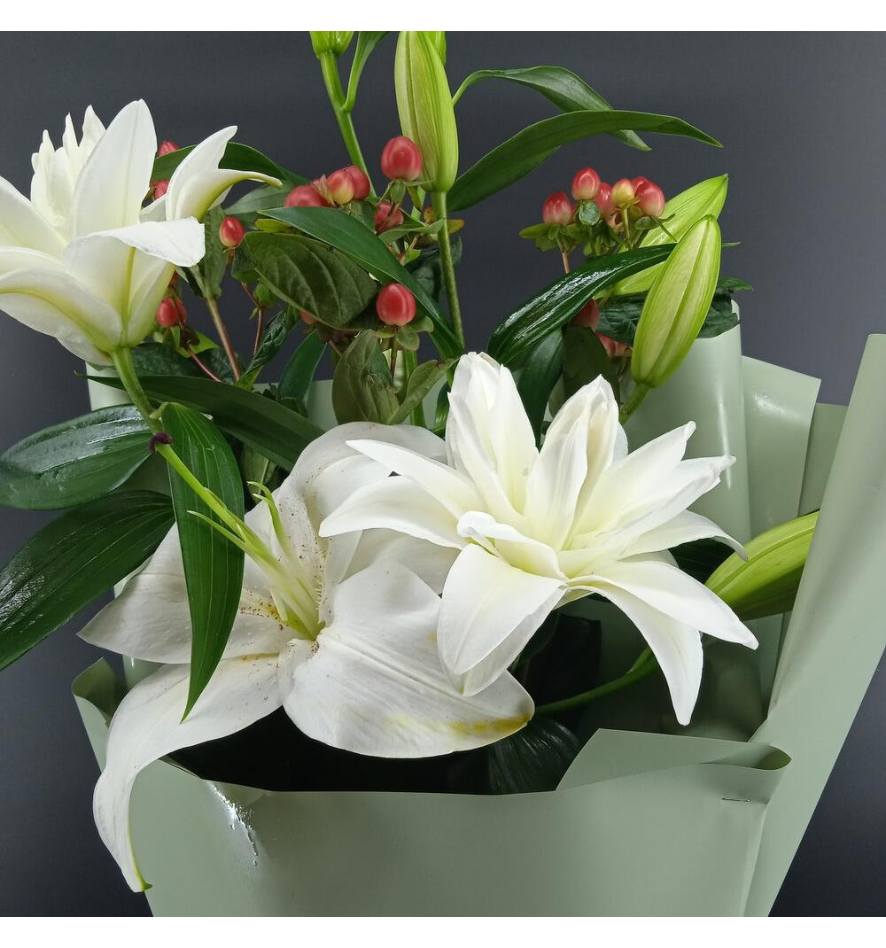 Букет из лилий – это изысканная и нежная композиция, которая заставляет восхищаться своей красотой. Цветы лилии привносят в атмосферу изысканность и элегантность, наполняя ее свежим и неповторимым ароматом. Этот букет является символом чистоты, нежности и гармонии, идеально подходящим для особых моментов в жизни, как праздники, юбилеи или романтические свидания. Букет из лилий – это замечательный способ выразить свои чувства и создать незабываемое впечатление.
