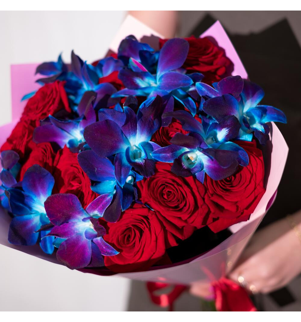Это впечатляющая композиция из изысканных орхидей и страстных красных роз. Орхидеи, с их экзотической красотой и элегантностью, придают букету загадочность и утонченность, а красные розы символизируют страсть и любовь. Этот букет является уникальным сочетанием прекрасных цветов, которые вместе создают впечатляющий и яркий образ. Букет "Космические орхидеи с красными розами" станет великолепным подарком на особый случай или романтический жест, который запомнится на долгое время.